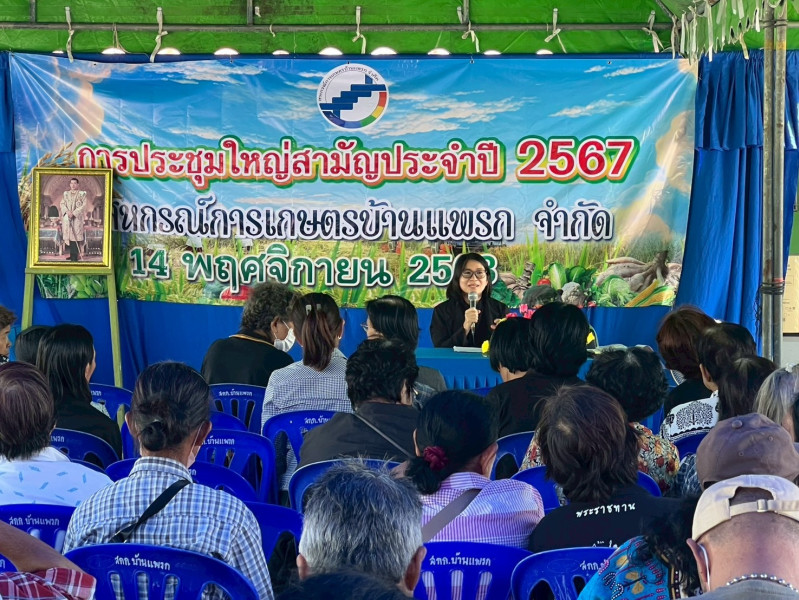 วันที่ 14 พฤศจิกายน 2568 นายสรรเสริญ พนิชการ สหกรณ์จังหวัดพระนครศรีอยุธยา มอบหมายให้ นางสาวอรัญญาพร เขียวอร่าม นักวิชาการสหกรณ์ชำนาญการพิเศษ และนางสาววันเพ็ญ เขตวิทย์ นักวิชาการสหกรณ์ชำนาญการ เข้าร่วมประชุมใหญ่สามัญประจำปี 2567 สหกรณ์การเกษตรบ้านแพรก จำกัด ณ สหกรณ์การเกษตรบ้านแพรก จำกัด อำเภอบ้านแพรก จังหวัดพระนครศรีอยุธยา